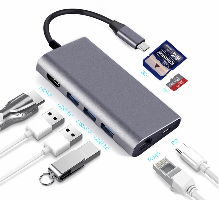 ADAPTADOR MINI USB-C HDMI, RJ45, RED, TARJETA DE MEMORIA
