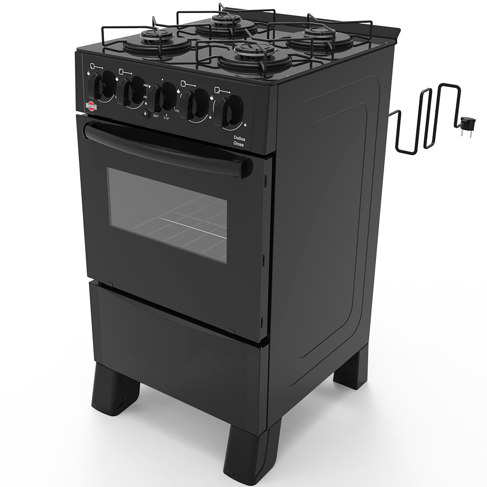 COCINA A GAS TOKYO DALLAS GLASS NEGRA 4H C/ENCENDIDO HORNO LIMPIA FACIL