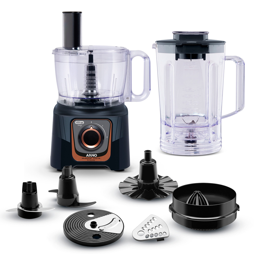 * 24 funciones para una Máxima Versatilidad. * Capacidad de la jarra con un total de 3,1L. * Accesorios extraíbles y fáciles de limpiar. * Capacidad del recipiente de 1,5L. * Potencia 700W. * 2 velocidades. * 7 accesorios. Imágenes meramente ilustrativas. Imágenes e información sujetas a cambios sin previo aviso.