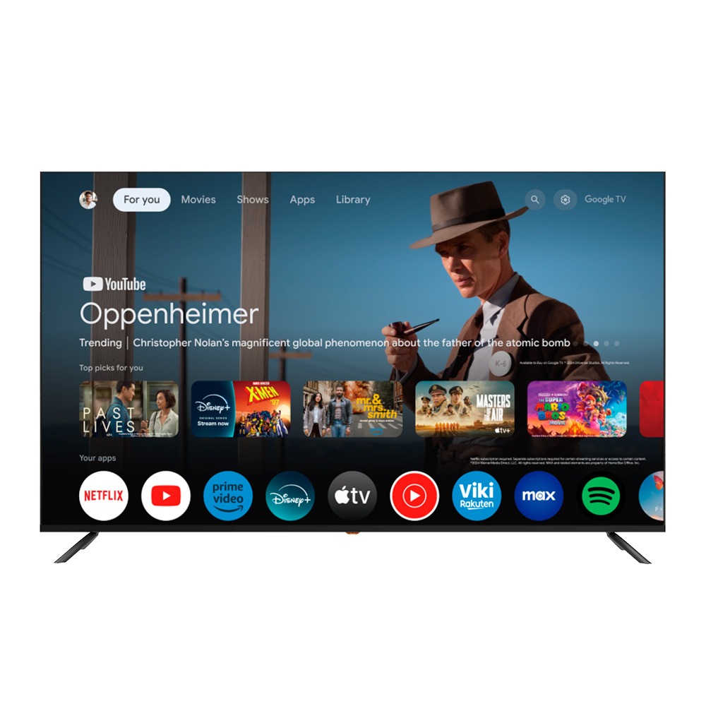 * Sistema operativo Google TV. * Salida de audio digital óptica. * Asistente de Google. * Entrada HDMI. * Entrada USB. * Google Cast. * Dolby Audio. * Puerto RJ45. * Entrada AV. * Bluetooth. * Wi-Fi. MEDIDAS DEL PRODUCTO. * 146x85x9 cm Imágenes meramente ilustrativas. Imágenes e información sujetas a cambios sin previo aviso.